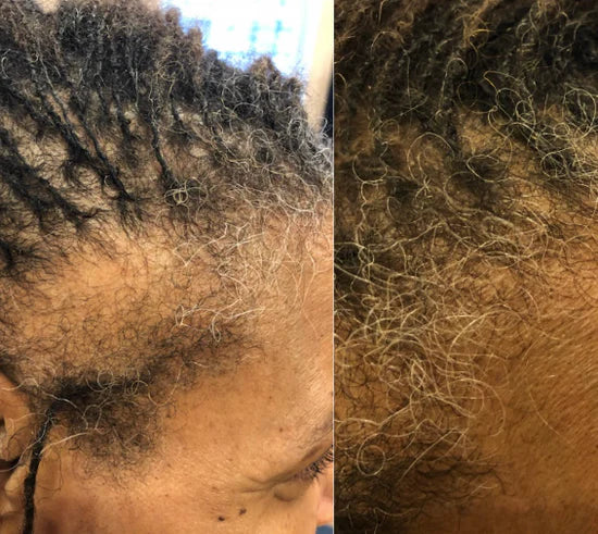 Visible baby hair growth around the temples and hairline by week 2