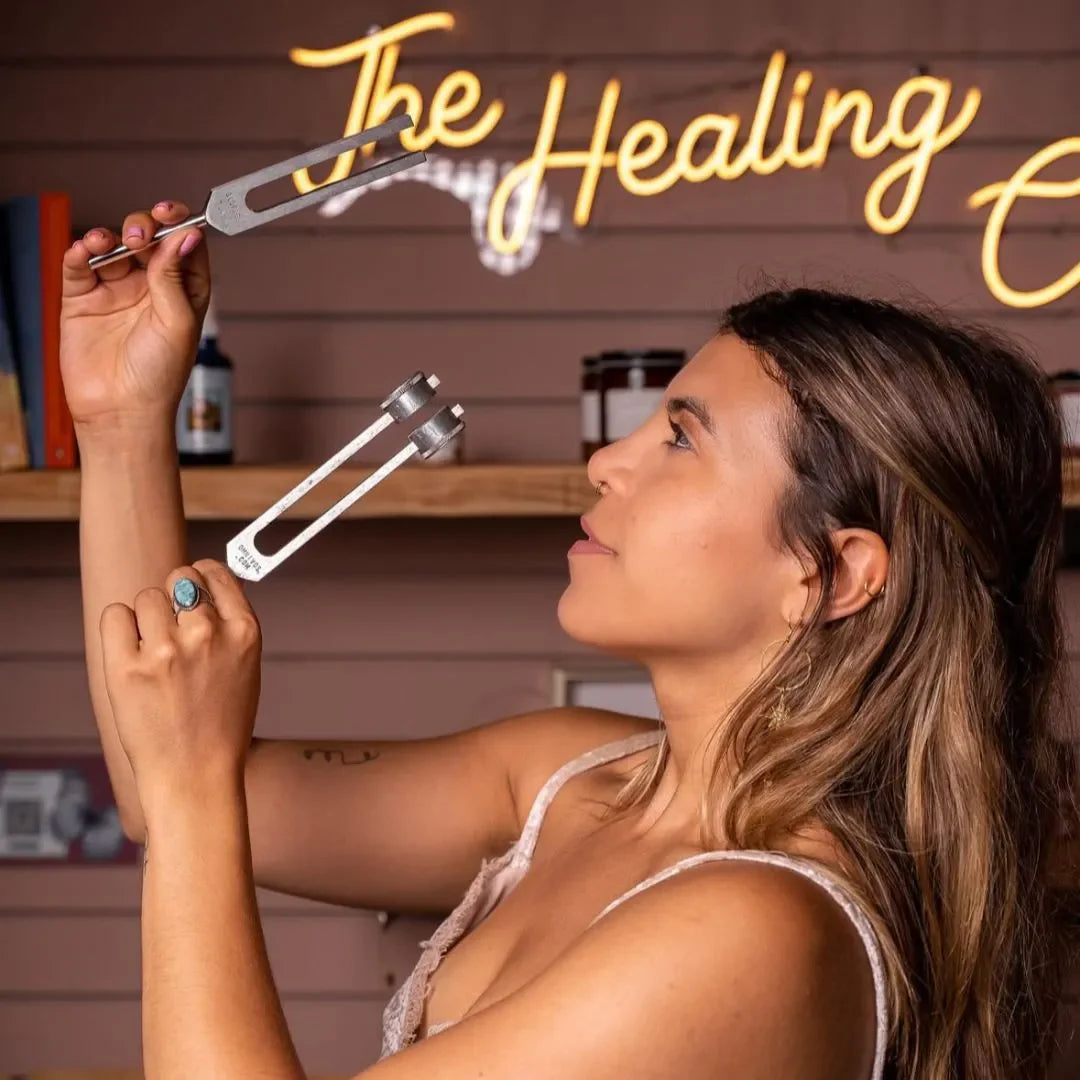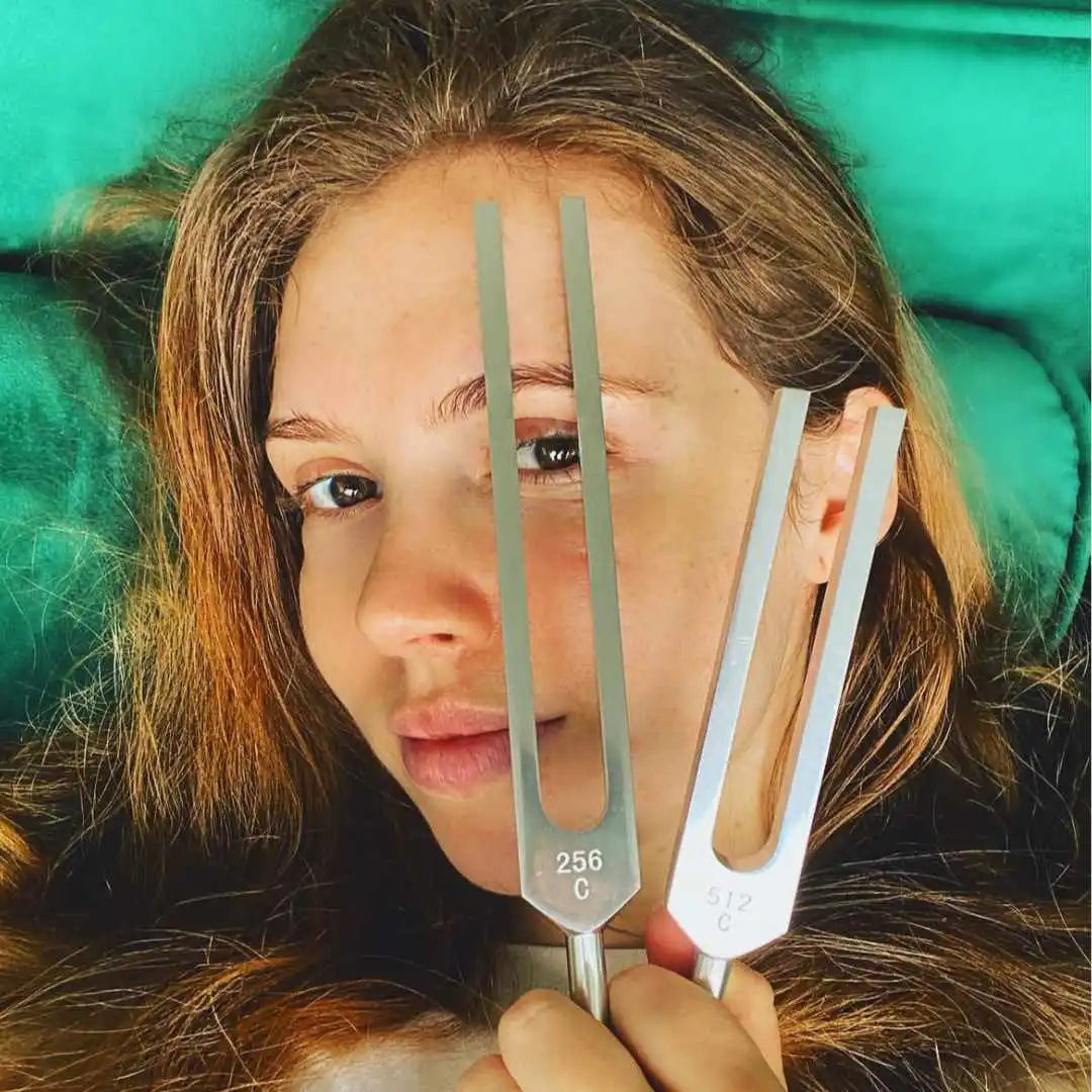 Pro tip: The weighted forks work through vibration on the body. The unweighted forks work through sound near the ears. Both methods activate your body's natural healing response.