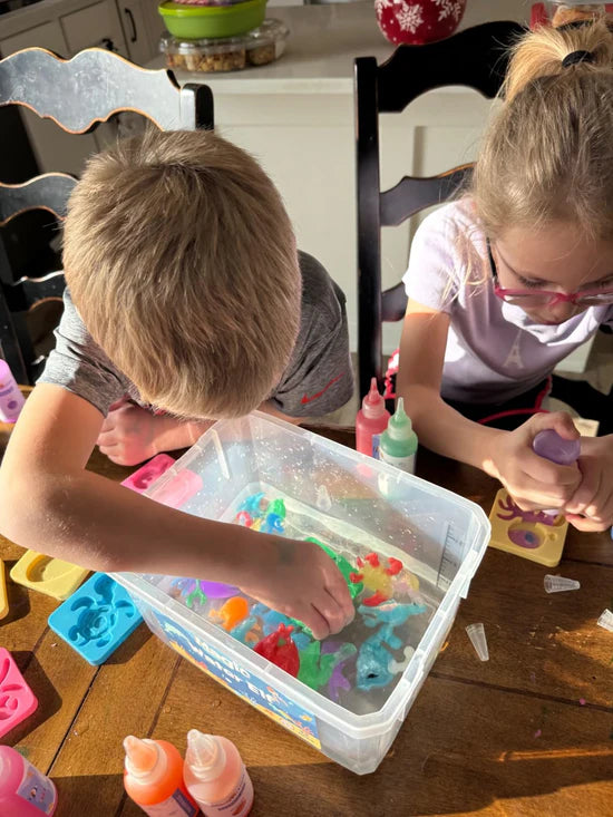 Water-activated formula firms up in minutes so kids pour, dip, and reveal 3D shapes without waiting.